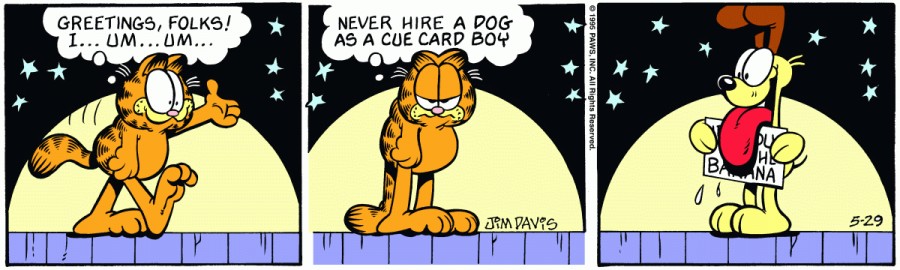 Гарфилд: Привет, ребята! И...ГМ...ГМ... Никогда не нанимайте собаку в качестве разносчика карт.