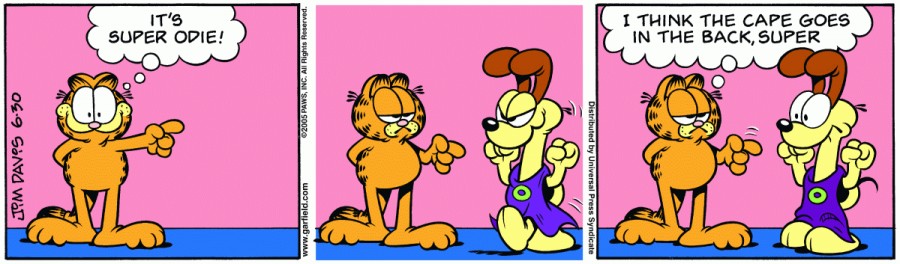 Garfield: It's super Odie! I think the cape goes in the back, super.