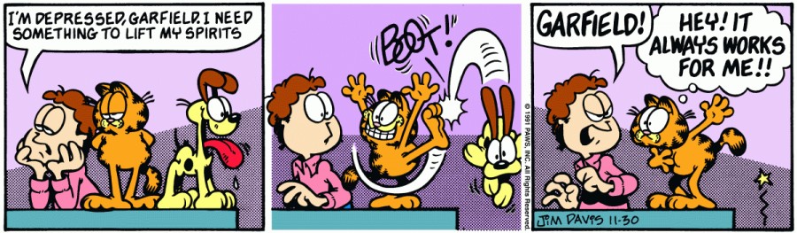 Jon: I'm depressed, Garfield. I need something to lift my spirits.
